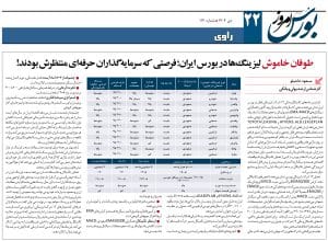 گفتوگوی بورس امروز با مسعود حاجیلو، کارشناس ارشد پولی و بانکی، درباره شرکت های لیزینگ در بورس ادامه مطلب » 15 دی 1404 بدون دیدگاه