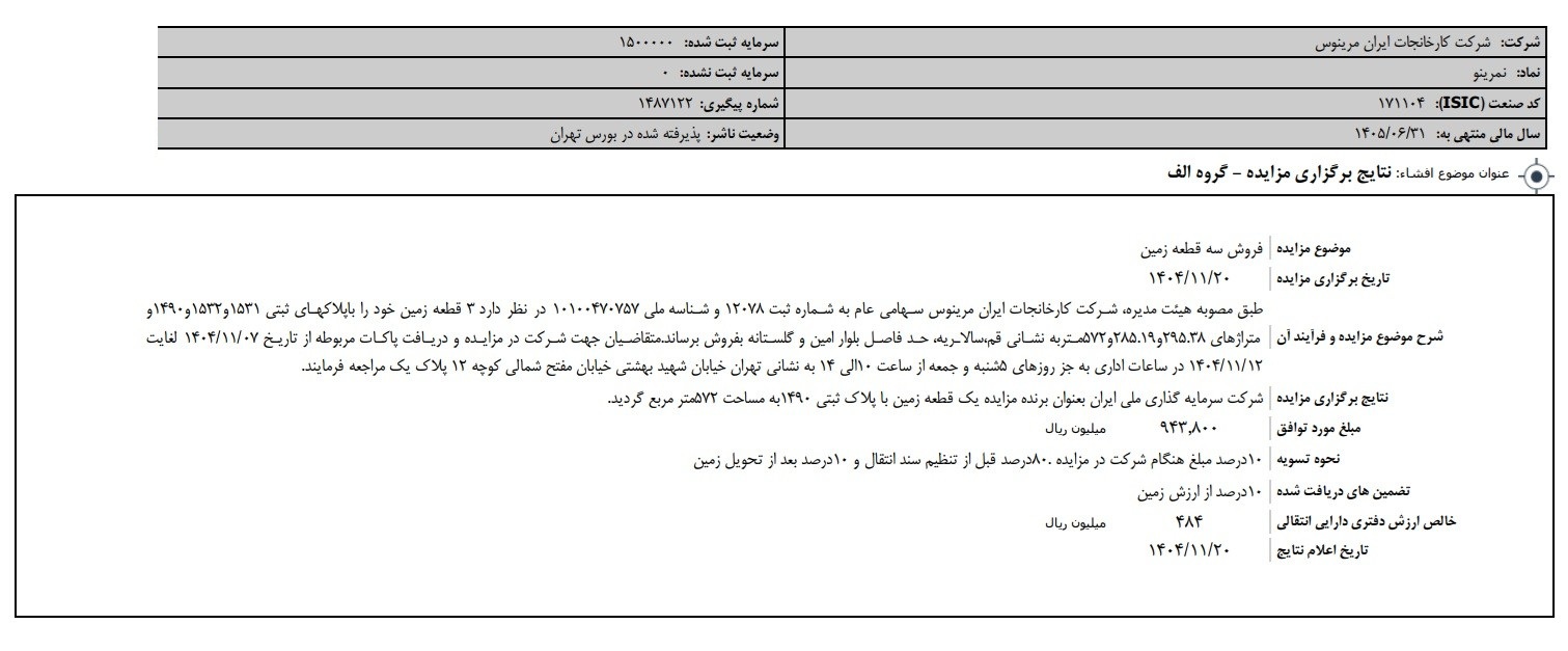 شرکت کارخانجات ایران مرینوس در نظر دارد 3 قطعه زمین خود را باپلاکهای ثبتی 1531و1532و1490و متراژهای 295.38و285.19و572متربه نشانی قم،سالاریه، حد فاصل بلوار امین و گلستانه بفروش برساند.