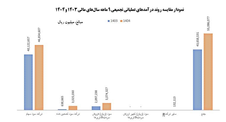 “شرکت سرمایه گذاری ملی ایران (سهامی عام)” طی نه ماهه مالی منتهی به 1404/06/31 مبـلغی معادل ۵۵,۰۸۶,۰۷۷ میلیون ریال “درآمدهای عملیاتی” داشته است؛ که حدود 26درصد نسبت به دوره مشابه قبل (1402/10/01 لغایت 1403/06/31) رشد داشته است. لازم به ذکر است حدود 85 درصد از درآمدهای عملیاتی شش ماهه این دوره (یعنی رقمی معادل ۴۶,۸۵۴,۶۰۷ میلیون ریال)، از محل “درآمد سود سهام” بوده است. درآمد سود سهام محققشده نشاندهنده جریان نقدی واقعی و اثربخشی سیاست سرمایهگذاری شرکت در دریافت سود نقدی از شرکتهای زیرمجموعه و دیگر سرمایهگذاریها است.