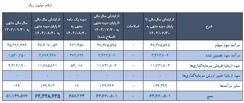 “شرکت سرمایه­گذاری ملی ایران (سهامی عام)” طی یازده ماهه مالی منتهی به 1404/08/30 مبـلغی معادل ۶۴,۳۲۸,۷۳۵ میلیون ریال درآمدهای عملیاتی داشته است؛ که حدود 40درصد نسبت به دوره مشابه قبل (1402/10/01 لغایت 1403/08/30) رشد داشته است. حدود 76 درصد از درآمدهای عملیاتی یازده ماهه این دوره (یعنی رقمی معادل ۴۸,۶۰۷,۰۵۳ میلیون ریال)، از محل “درآمد سود سهام” بوده است.