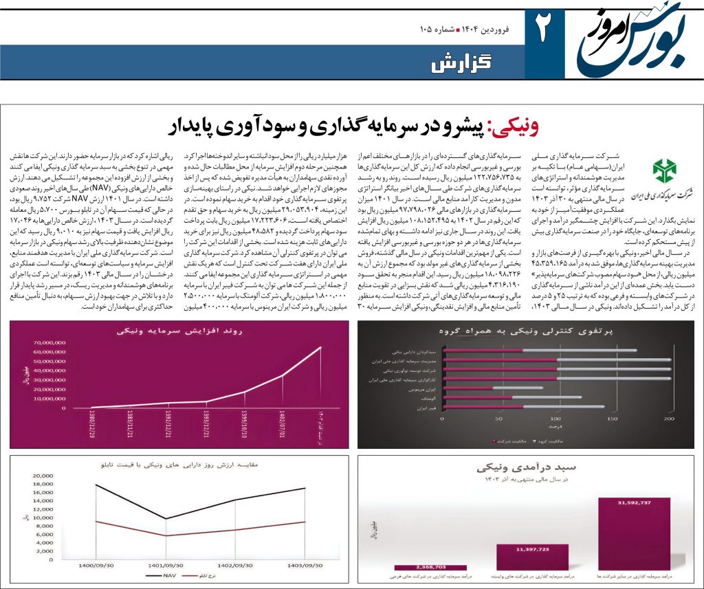 1 دیدگاه در “ونیکی: پیشرو در سرمایه گذاری و سودآوری پایدار (به گزارش بورس امروز)”